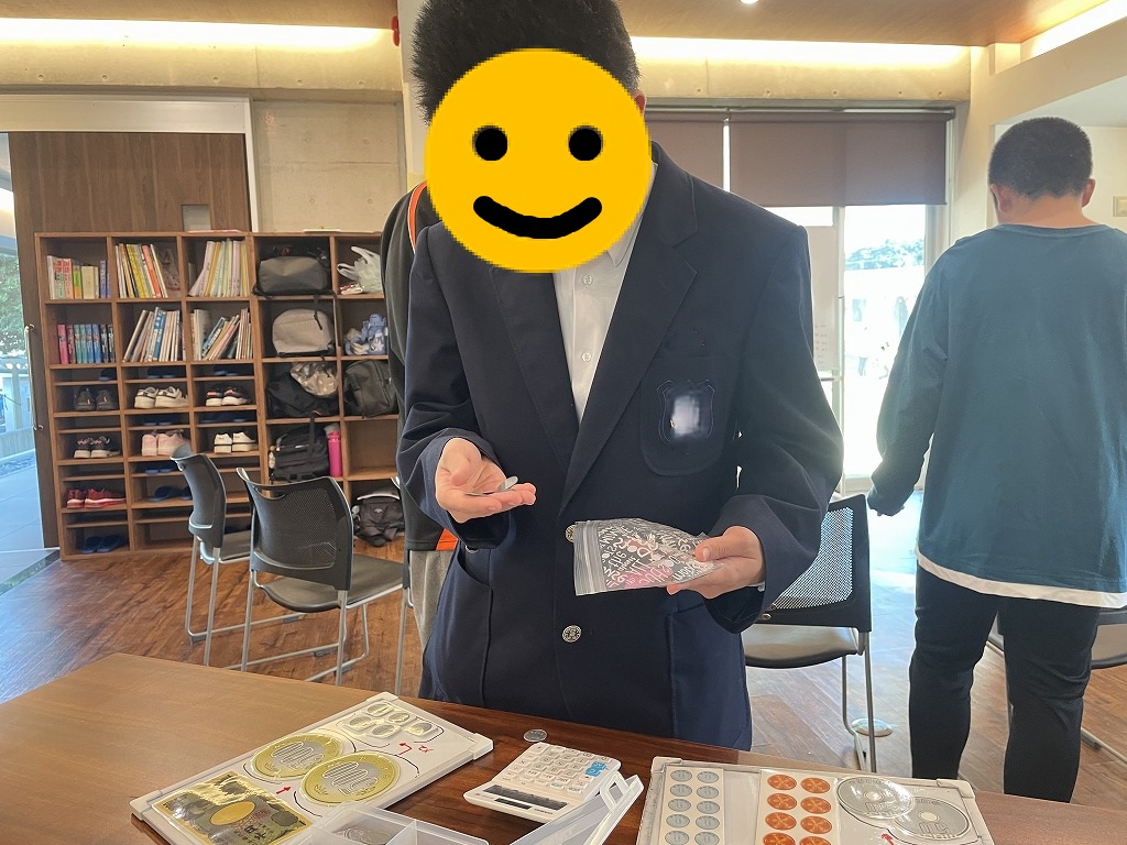 今回は「お金ゲットだぜゲーム」という、ココイロ独自のゲームでお金について学んでいます。