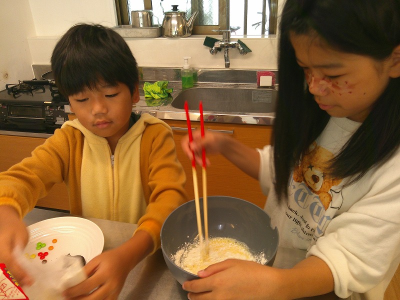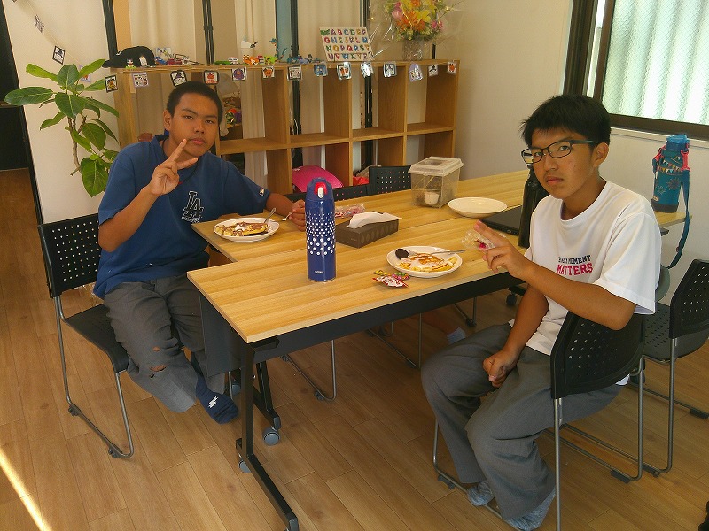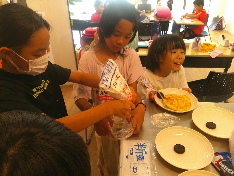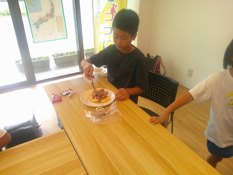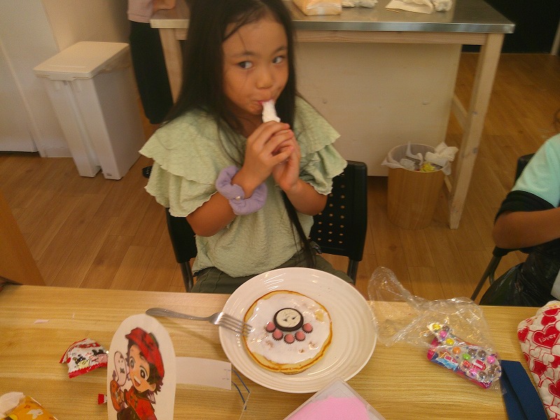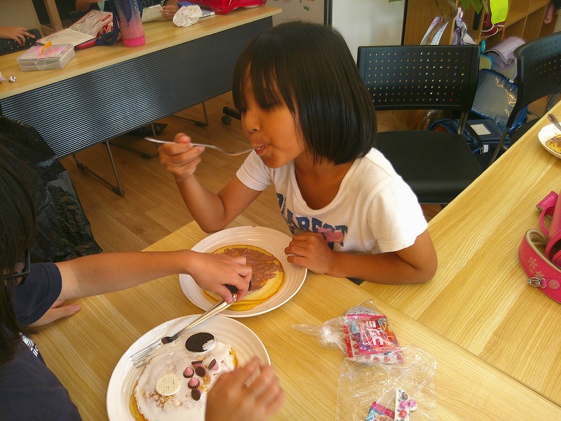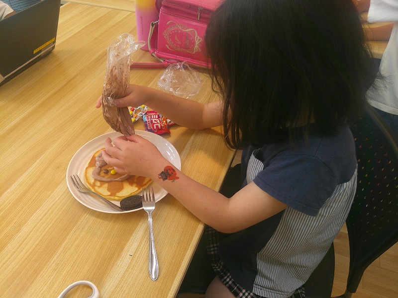 みんなでパンケーキを焼き、お菓子でデコレーションしました!