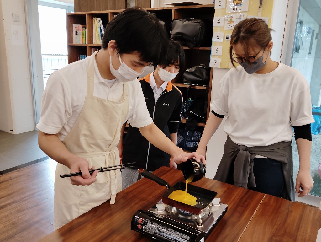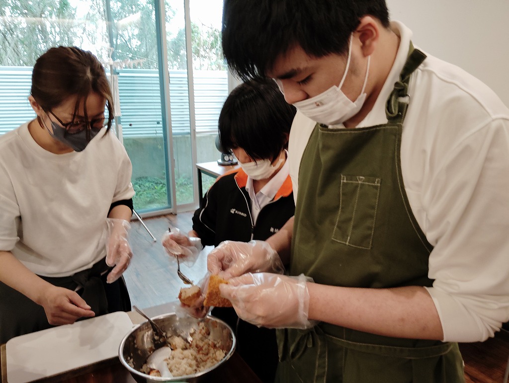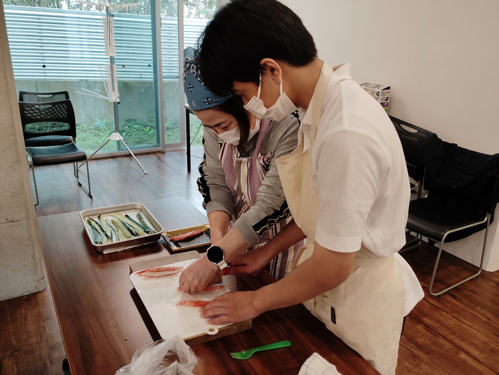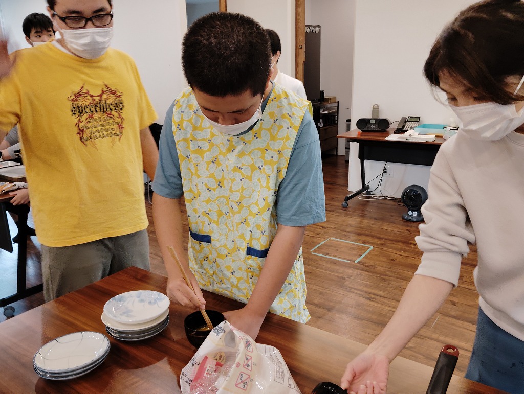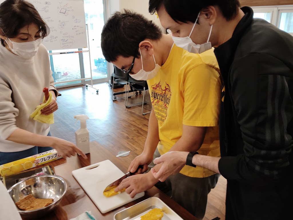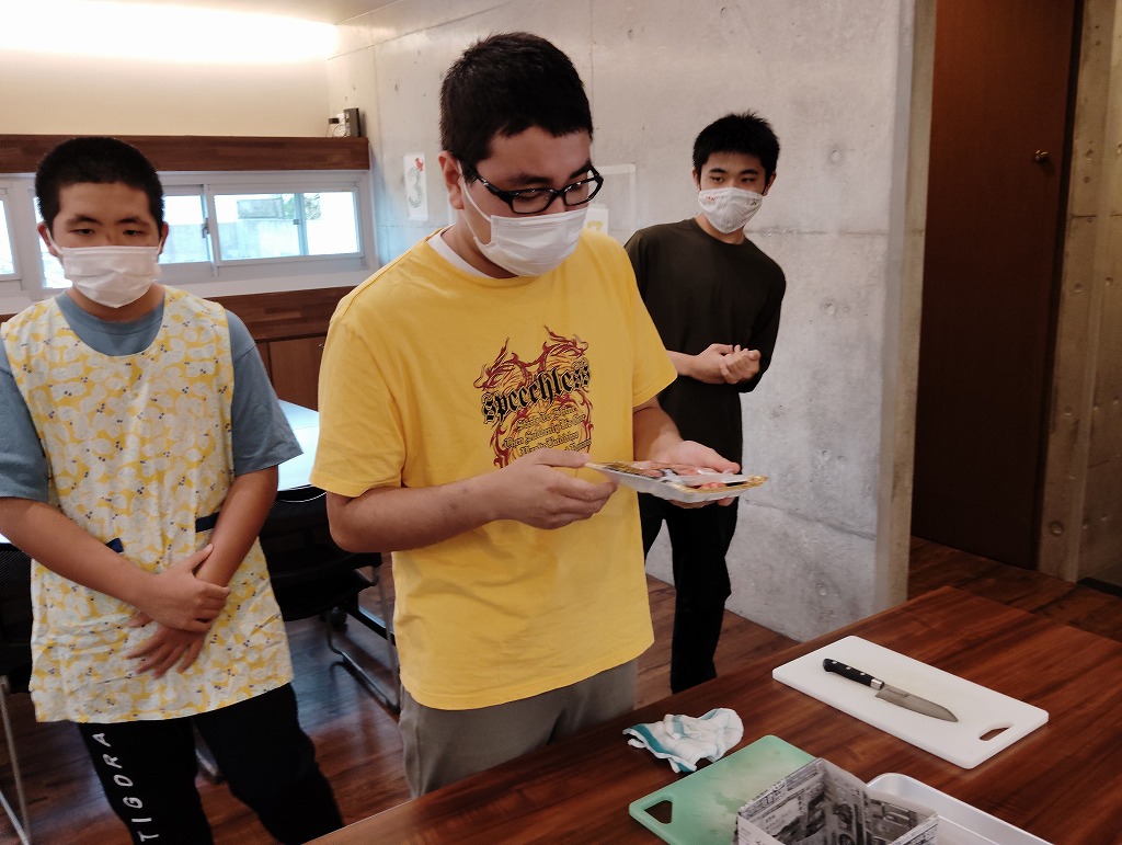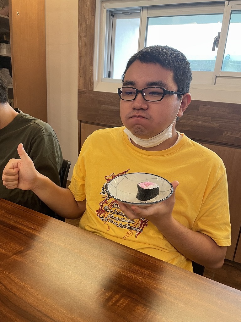 きゅうりやカニカマや卵焼きといった材料の細く切りだして準備をして、そこから巻いて一つのお寿司にしていく工程は大変でしたが、中々体験することない良い調理機会となりました。みんな美味しくいただきました!