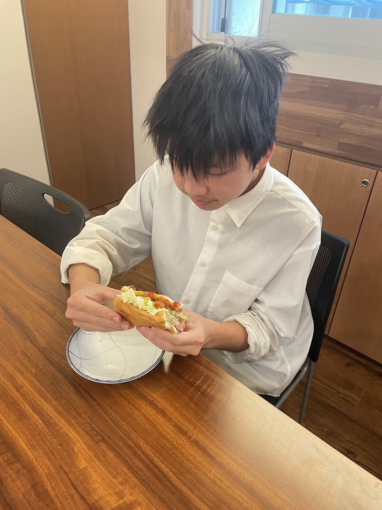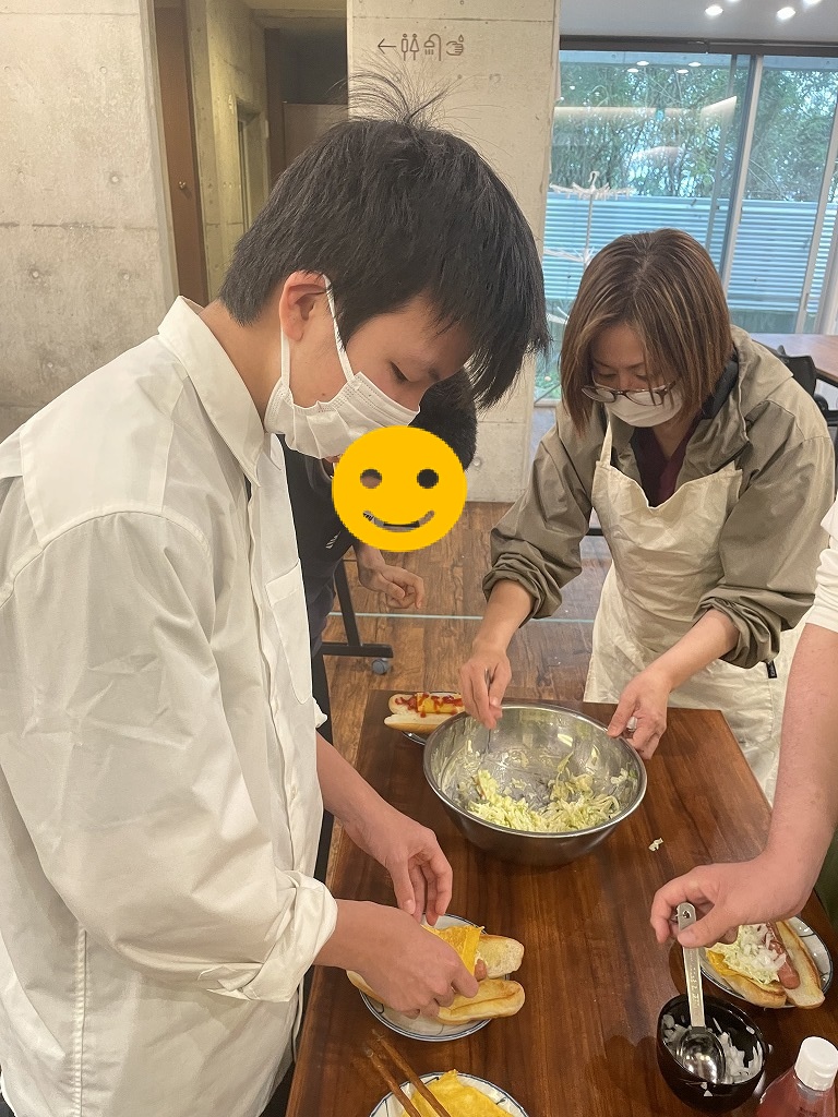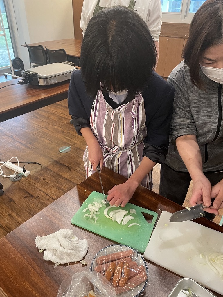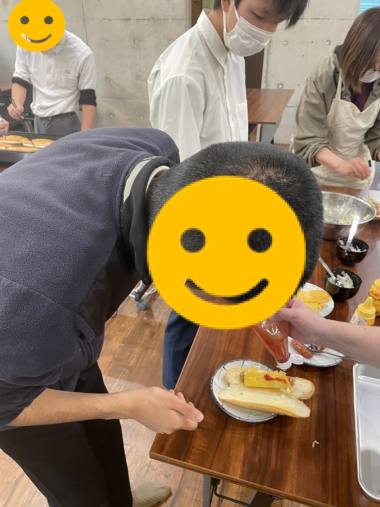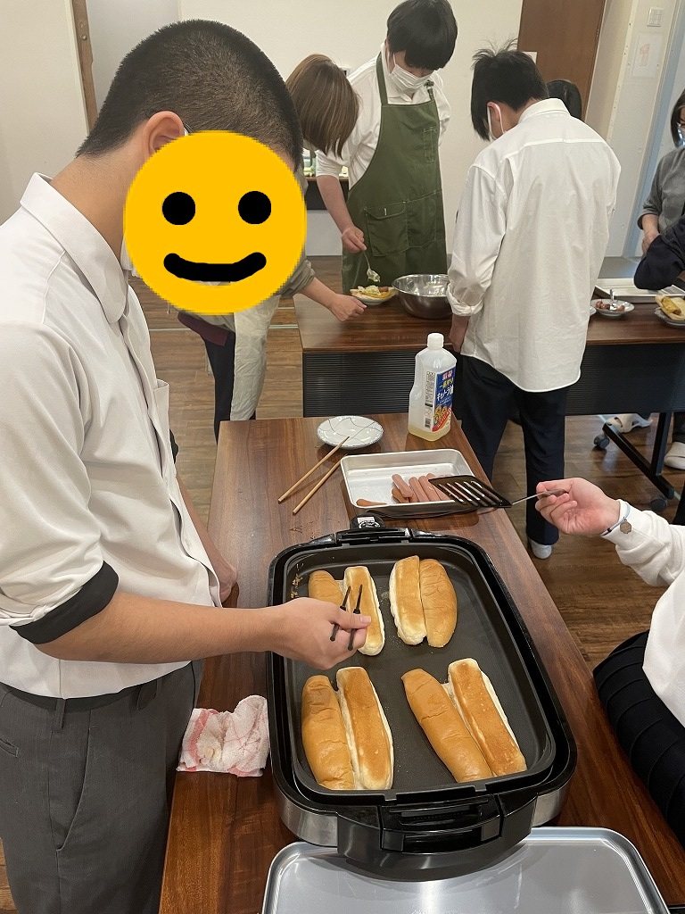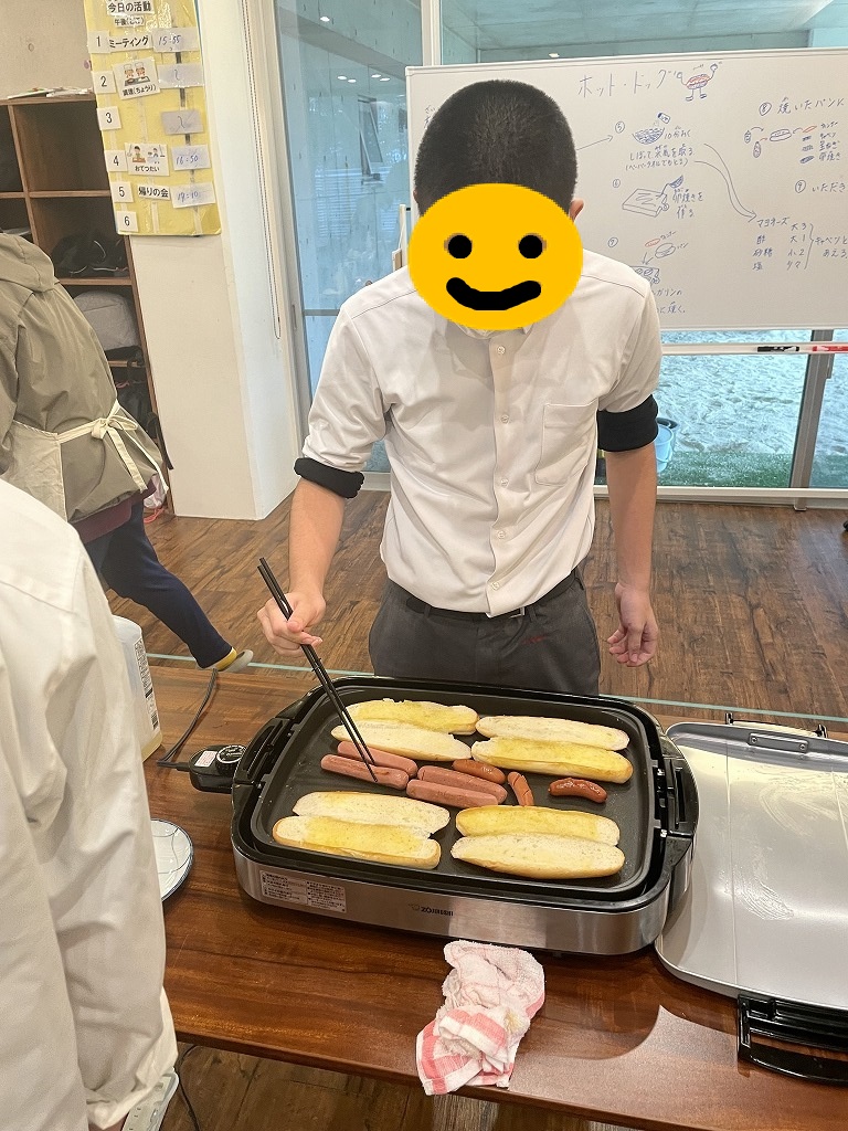 具材の下ごしらえも各自で行い、ウインナーとパンはホットプレートでこんがり焼いて、