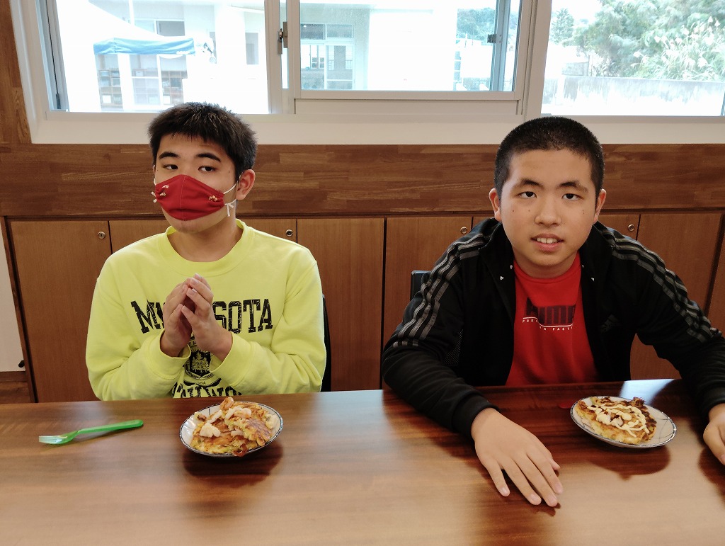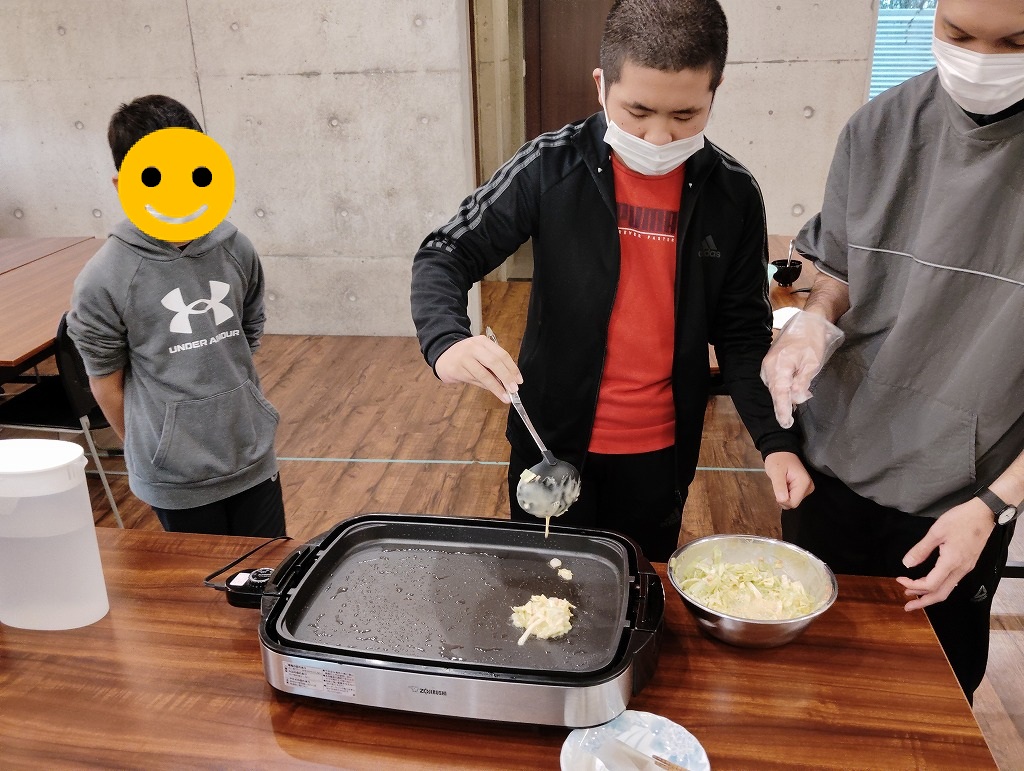 ホットプレート調理も上手にひっくり返して、出来立て熱々をいただきました(*^^)v