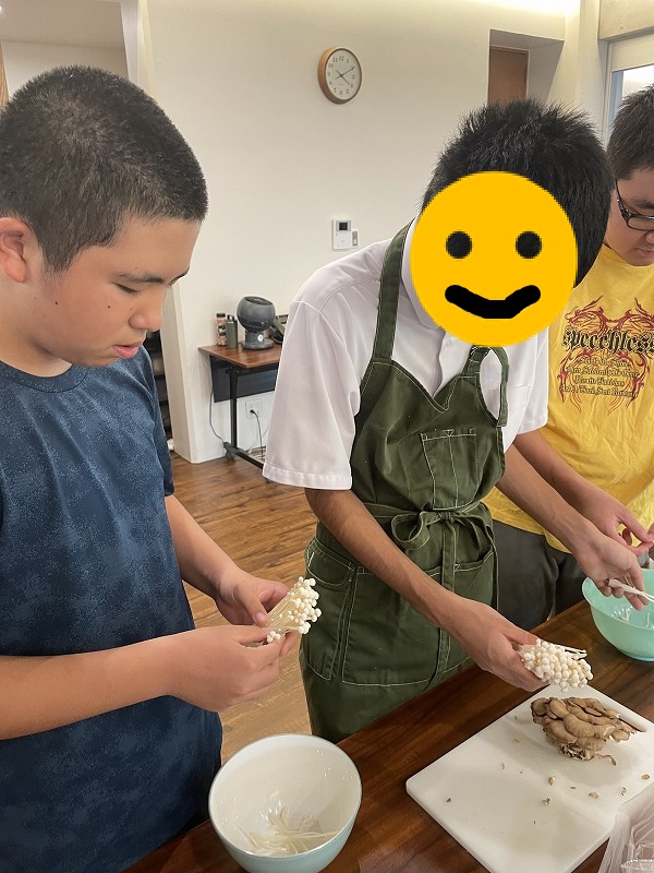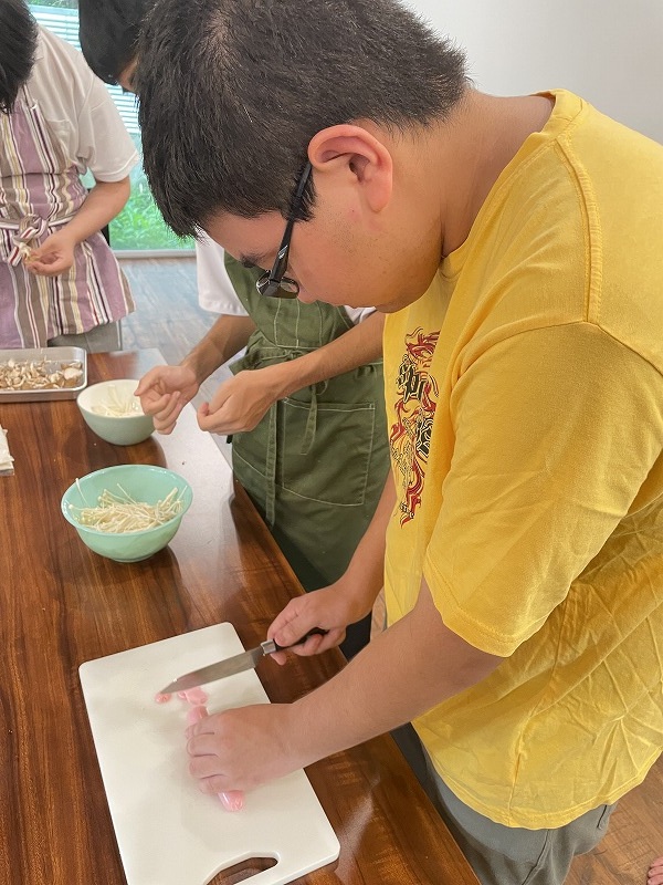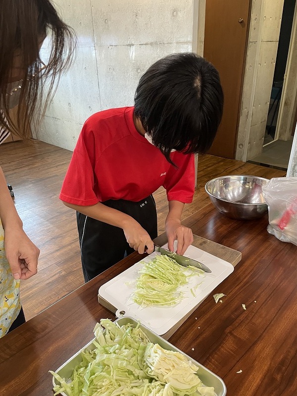 みんなキャベツの千切りやきのこを手でほぐす作業を丁寧に行えていました♪