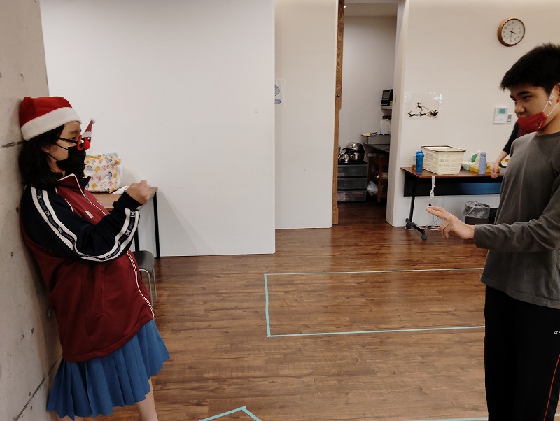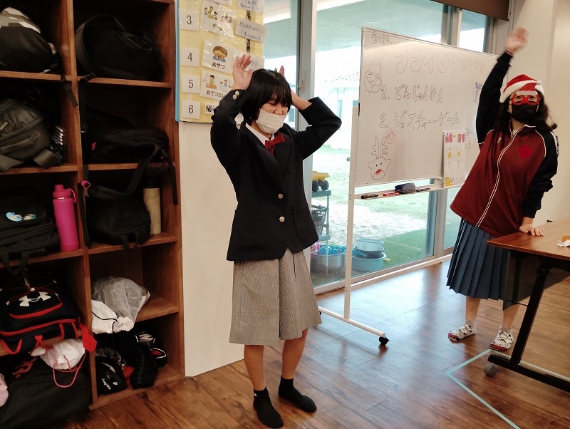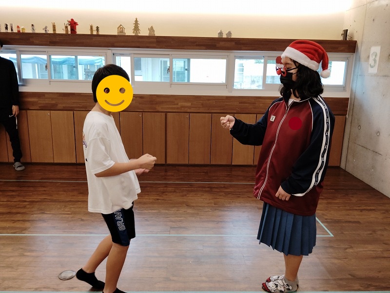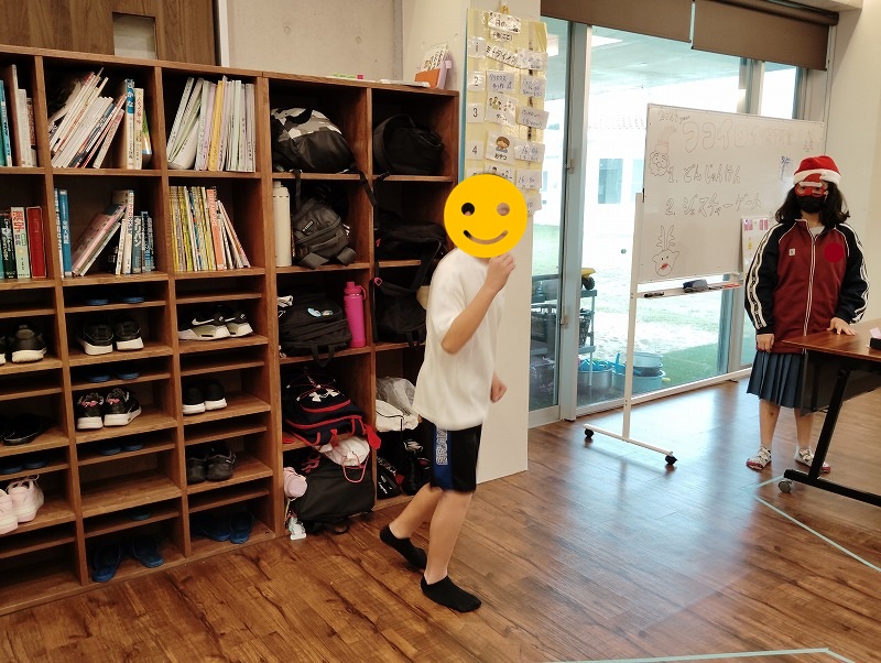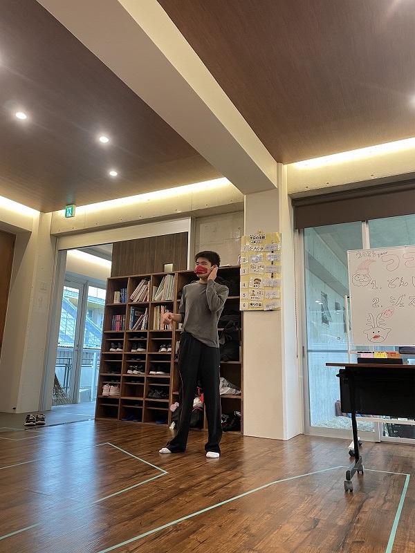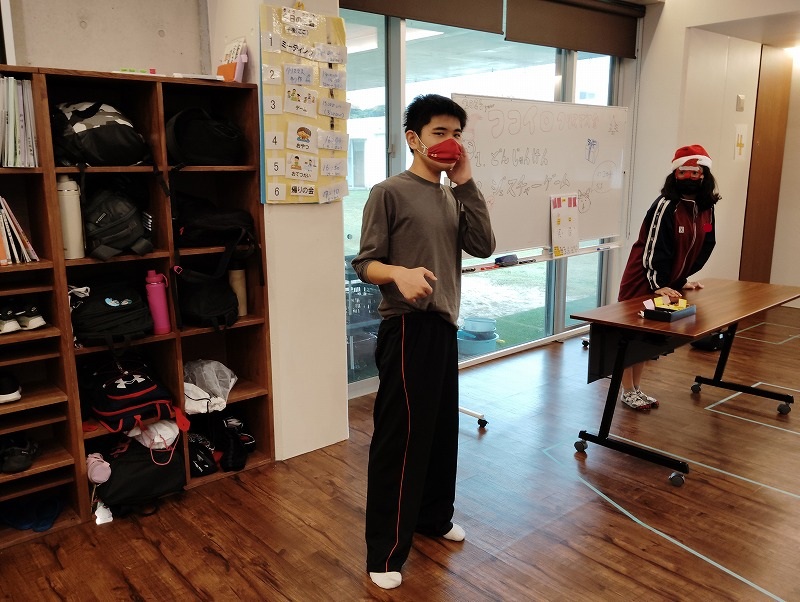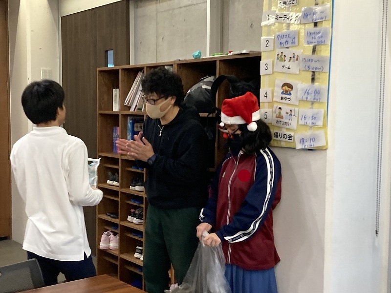 今回予定はしていなかったのですが、「サンタになってみんなにプレゼントを配りたい」といってくれた子がいたので、その子にサンタになってもらってプレゼントを配りました。
