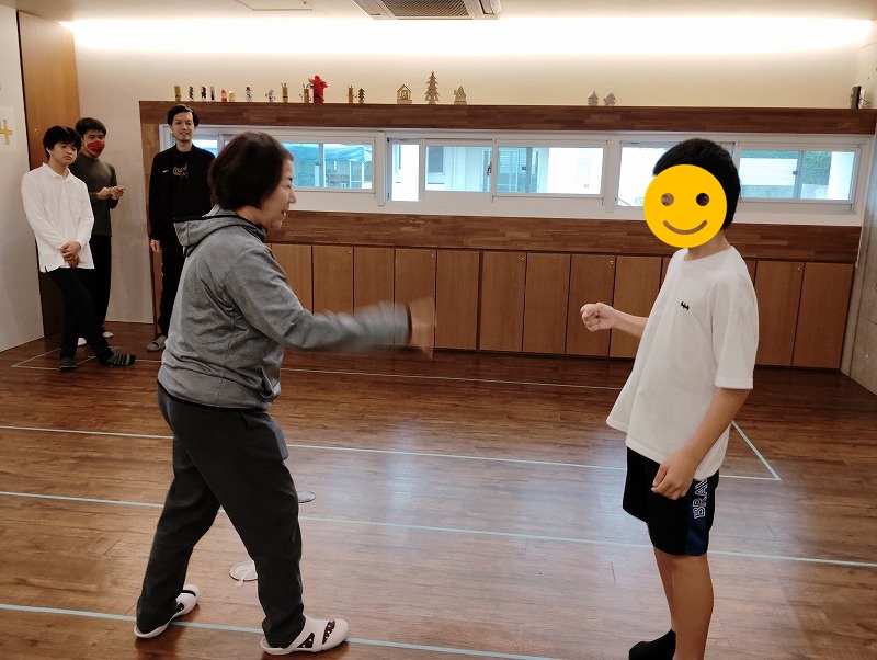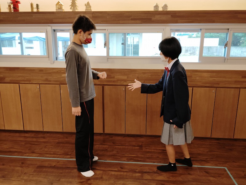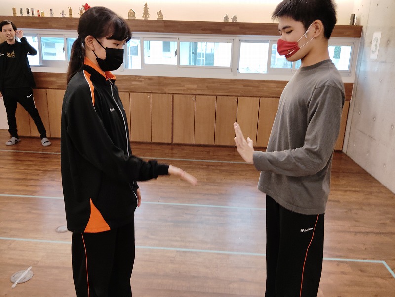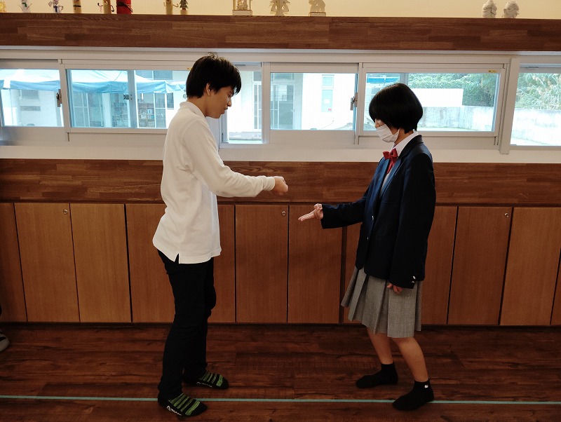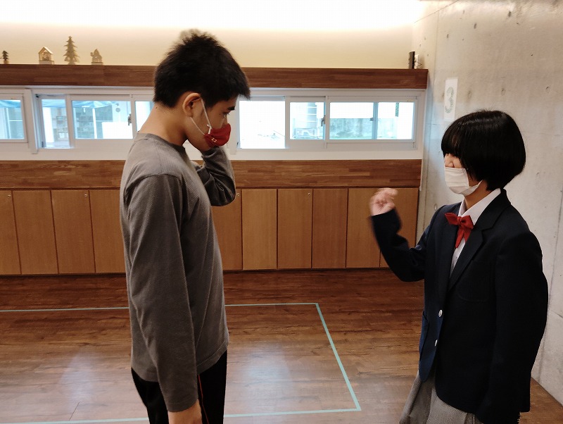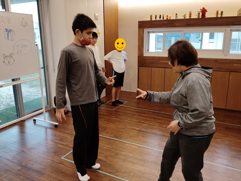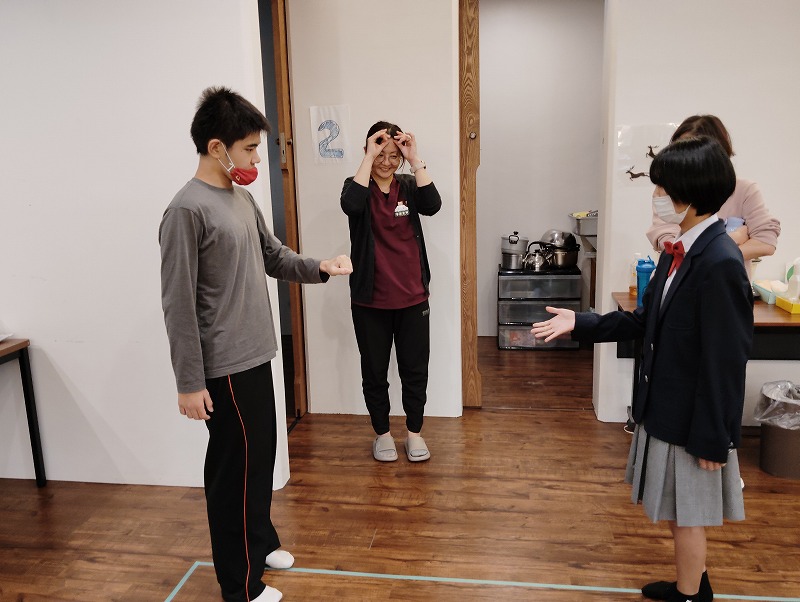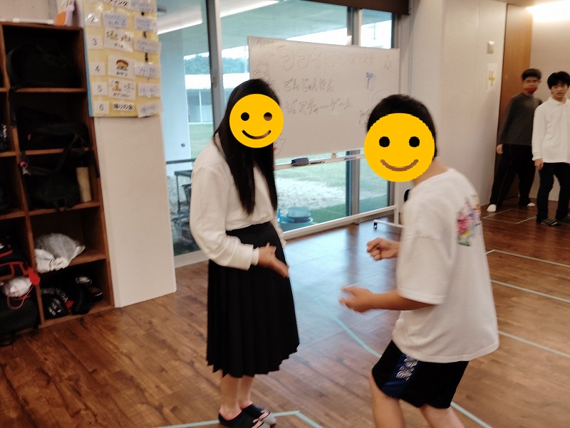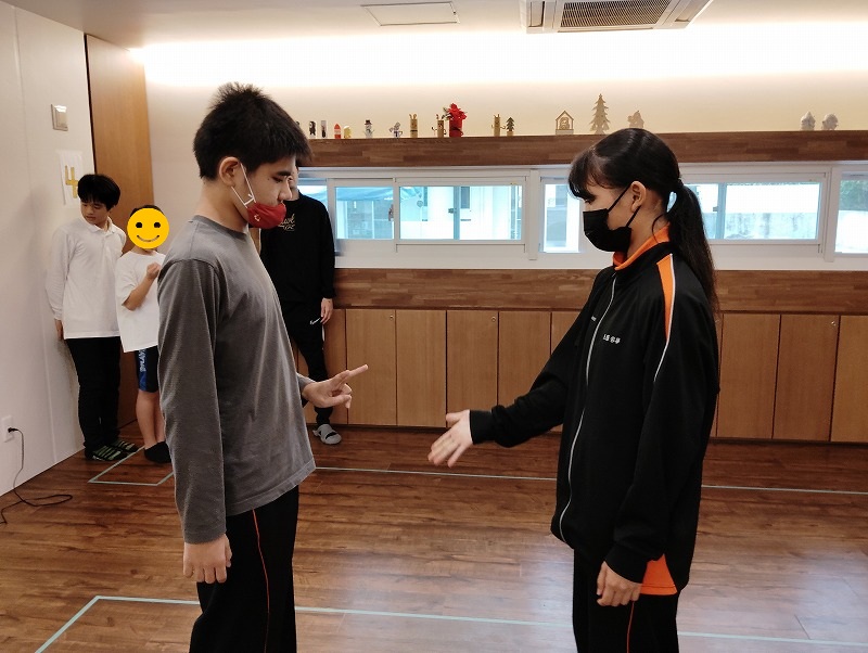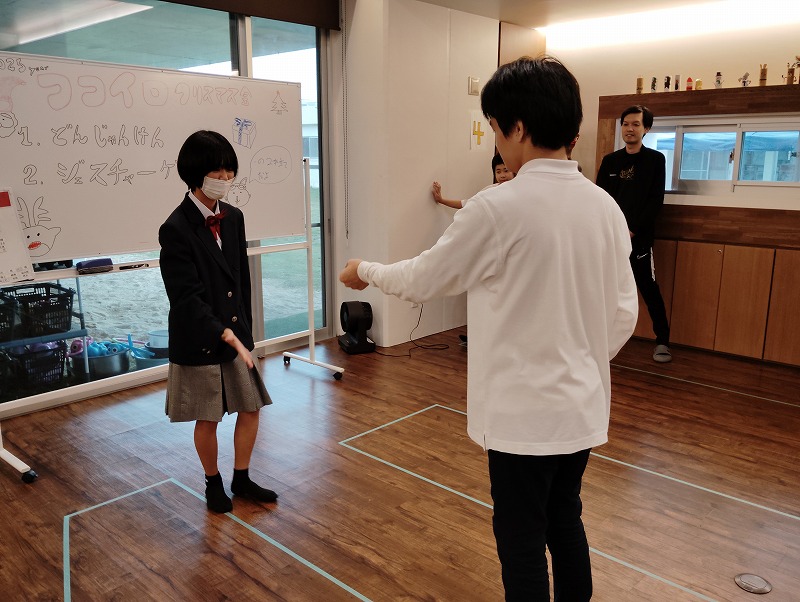 二つ目はジェスチャーゲームです。「スポーツ」「職業」「動物」の3つのジャンルのなかから選んでもらってジェスチャーしてもらいました。みんな上手ですぐに当てることができました。ちなみに女子は恥ずかしがってましたが、男子はノリノリでした。