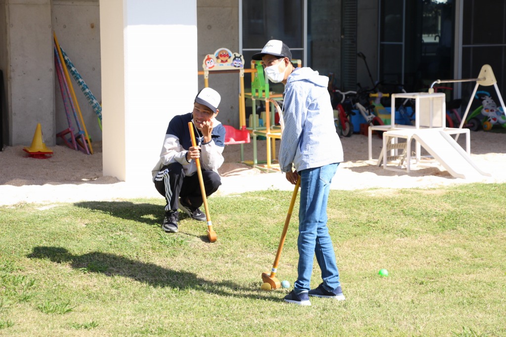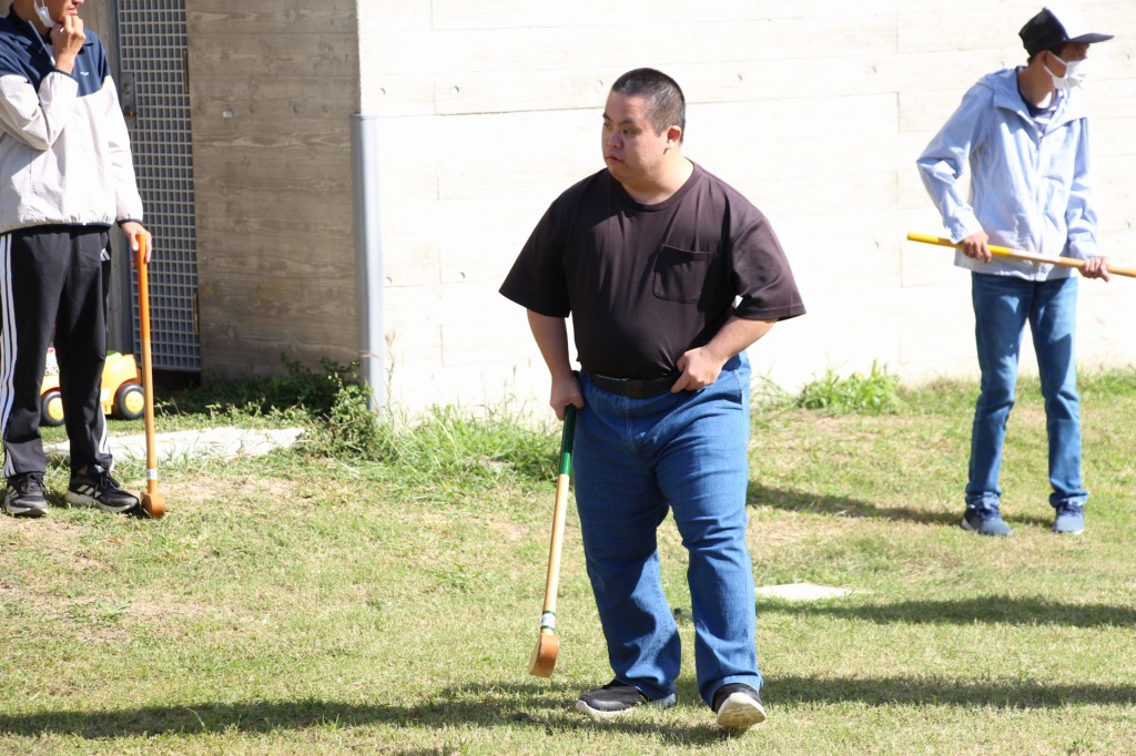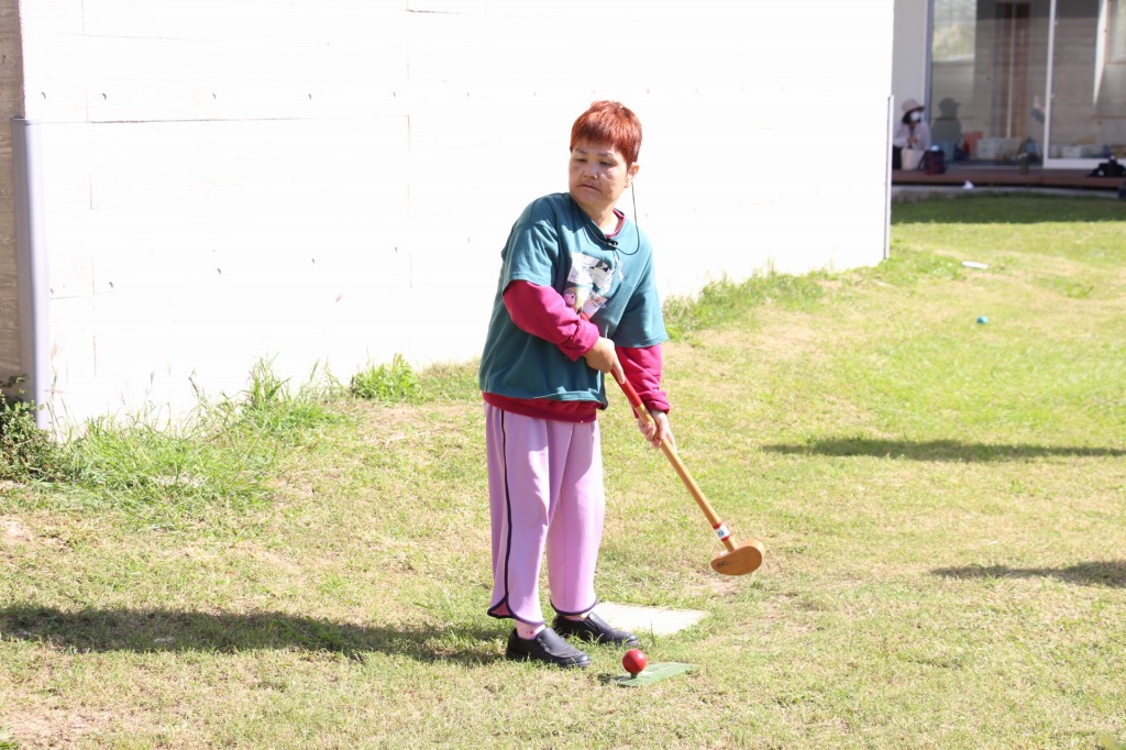 11月29日(土)と12月6日(土)に、余暇活動としてココイクの園庭をお借りし、グラウンドゴルフを行いました。両日とも天候に恵まれ、暖かく過ごしやすい気候の中での活動となりました。プレイするうちに、徐々にコツをつかむ利用者さんも見られ、皆さん終始、満足そうな笑顔で楽しまれていました。活動後は青空の下で昼食をとり、心身ともにリフレッシュできる時間となりました。今後も、利用者の皆さんが楽しみながら参加できる余暇活動を大切にしていきたいと思います。