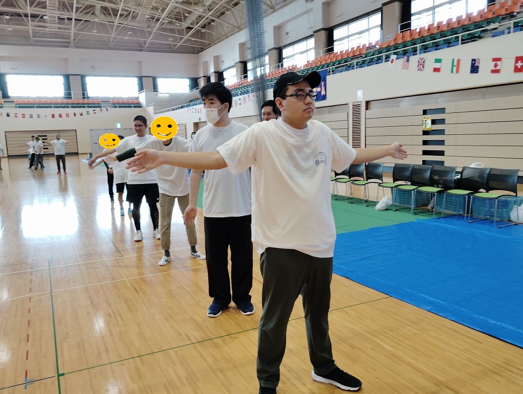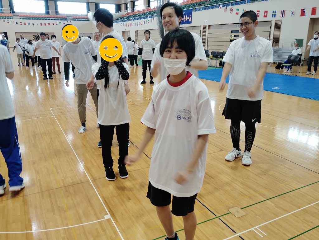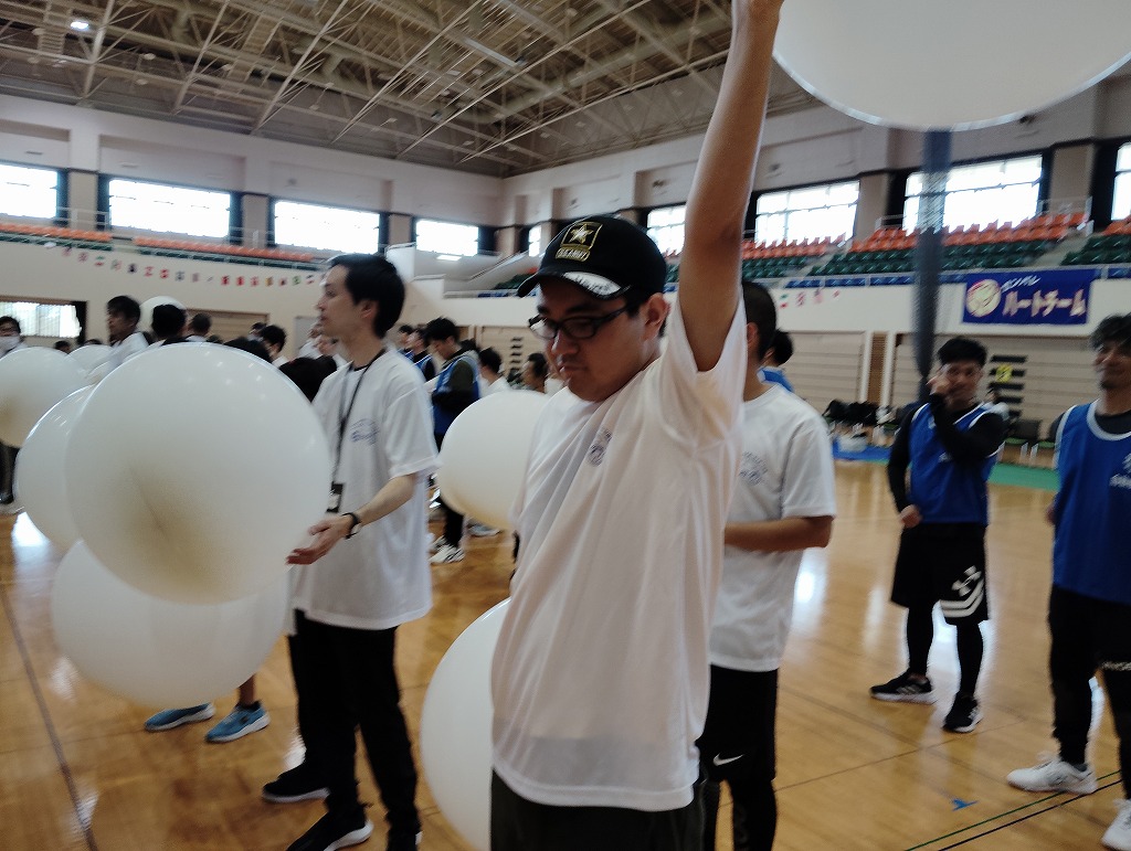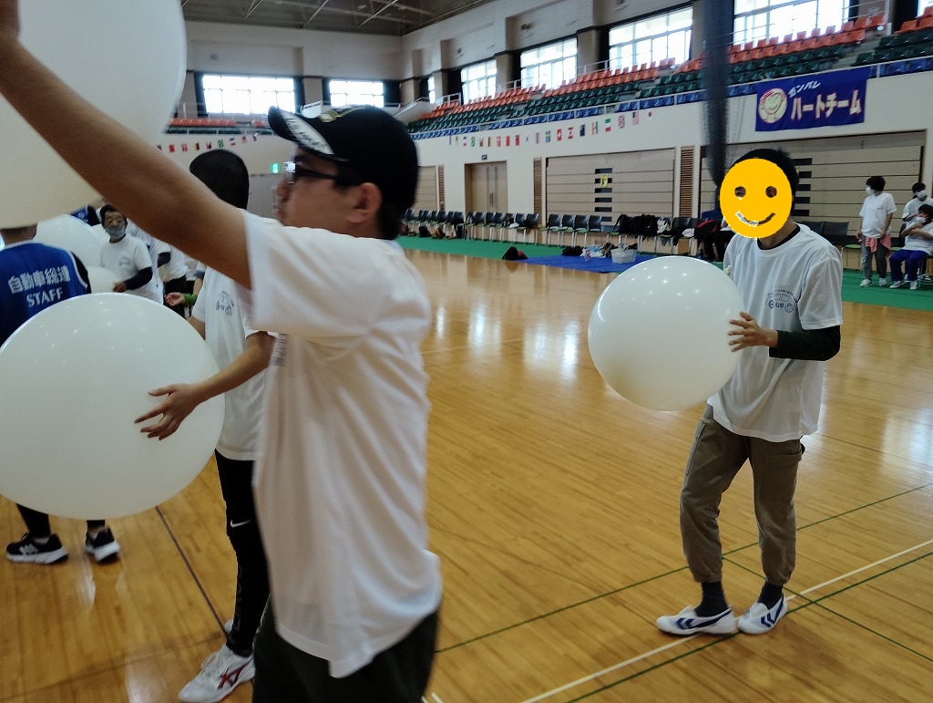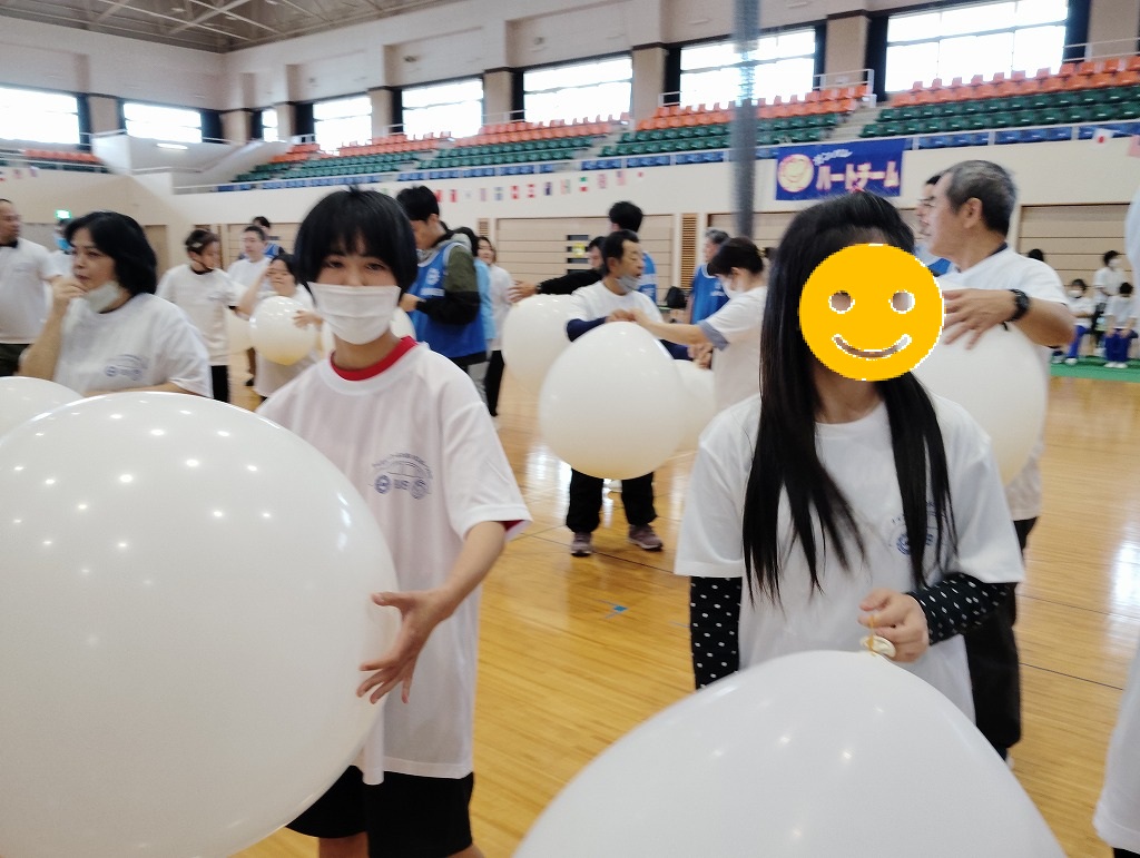 競技の内容は「ロープ送り」「ホール・イン・ワン」「風船バレー」の三種目があり、お昼休憩後にはゲストによる漫談やエアロビック体験といった、盛り沢山の内容でした(^^♪