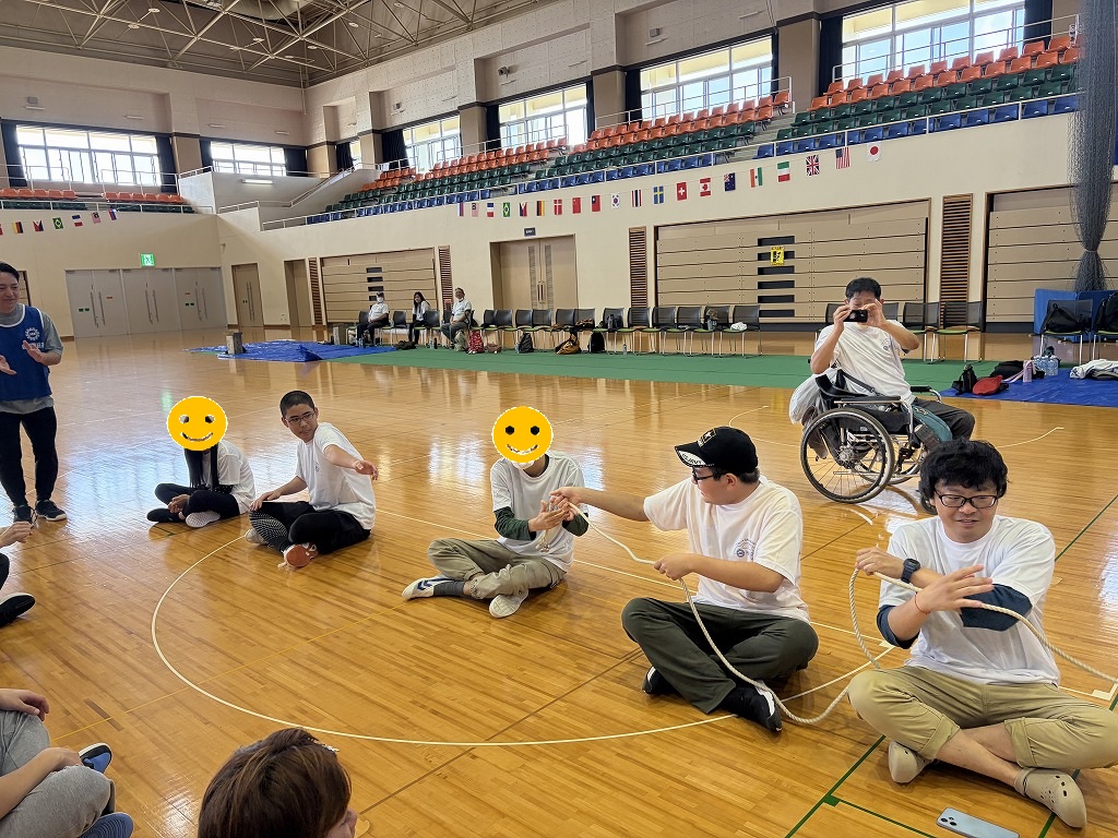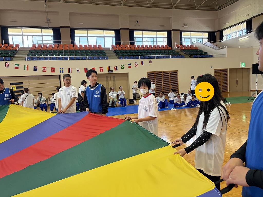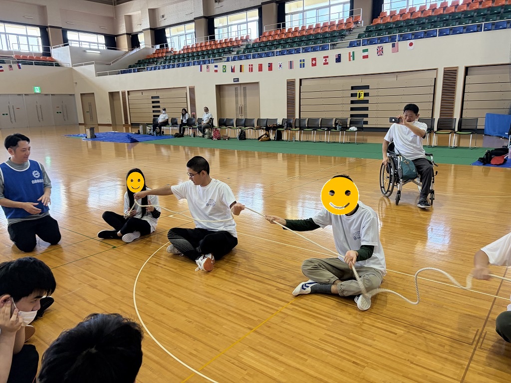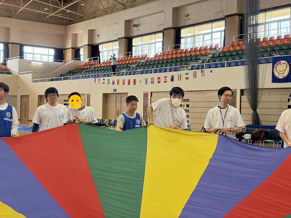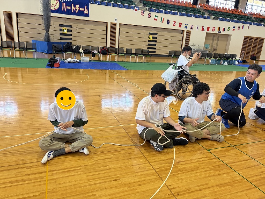 競技の内容は「ロープ送り」「ホール・イン・ワン」「風船バレー」の三種目があり、お昼休憩後にはゲストによる漫談やエアロビック体験といった、盛り沢山の内容でした(^^♪