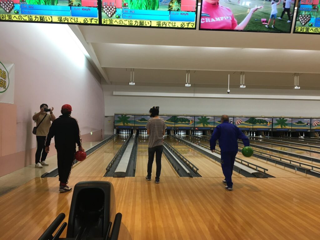 令和4年11月5日(土)に、スカイレーンにて余暇活動支援(ボウリング)を行いました。コロナの影響で自粛していたボウリングの第二回目を開催しました。参加した利用者さんはても楽しそうにプレイをし楽しんでいました。今回も2ゲームを行い終了。この日は天気も良く帰り道は、ドライブをしながら海辺で弁当ランチ。海も空もきれいでランチ後はみんなで海を背景に記念撮影をしました。 大きなトラブルもなく無事終了しました。