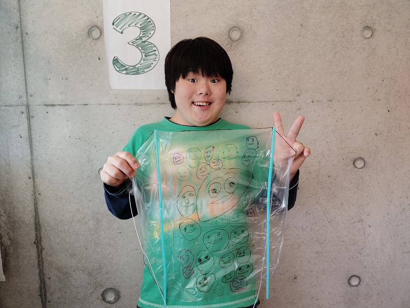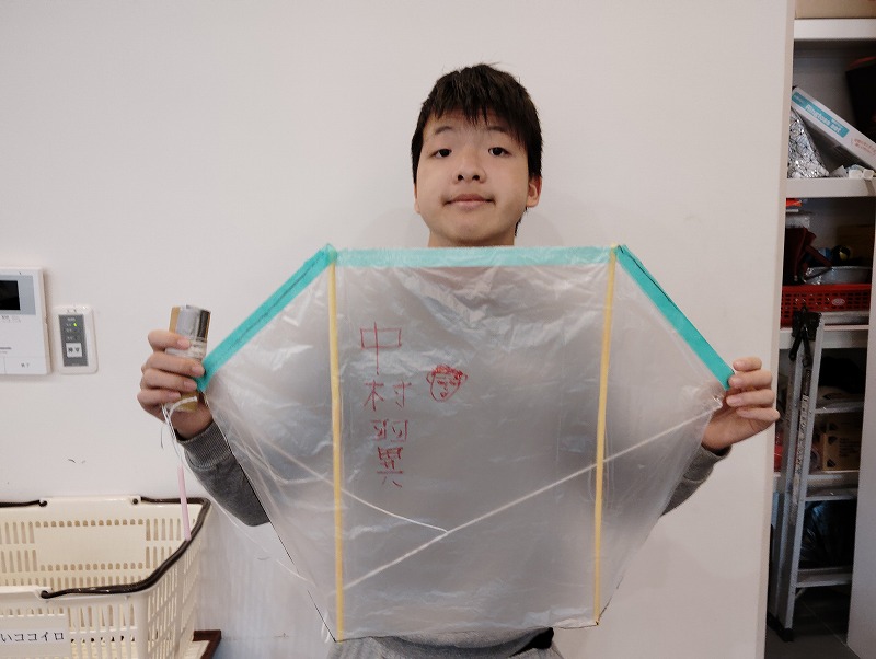 ビニール袋とストローとタコ糸を用いて、一から凧を手作りしてみました。