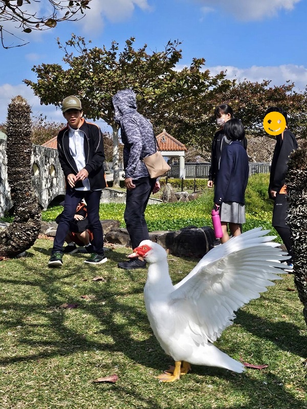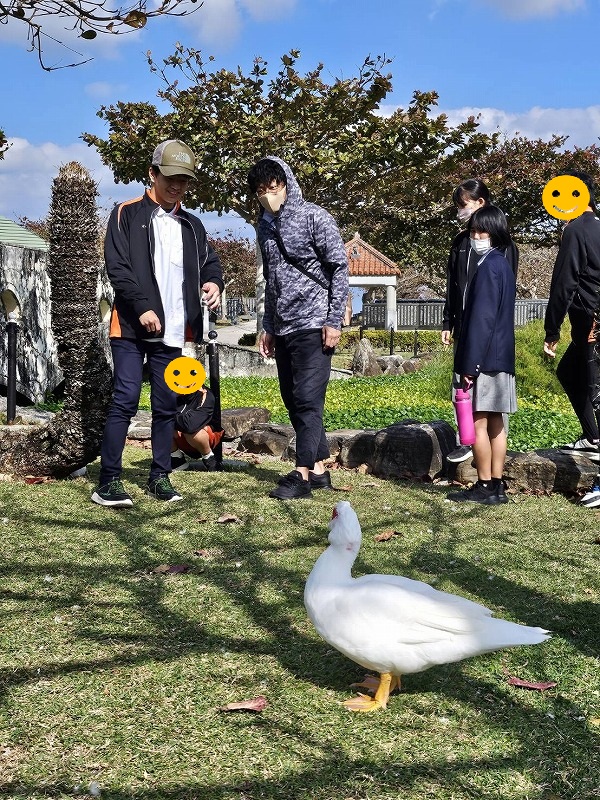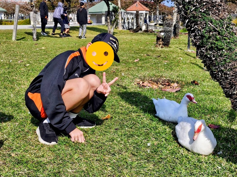 前回は丘の方へ散策に行ったので今回は公園の中心付近を歩いてみました。公園内には自分たち以外にも県外の修学旅行の生徒さんたちも見かけました。公園内の鳥は人慣れしていて、近くまで寄ってみても逃げることなく堂々とした様子で出迎えてくれました。