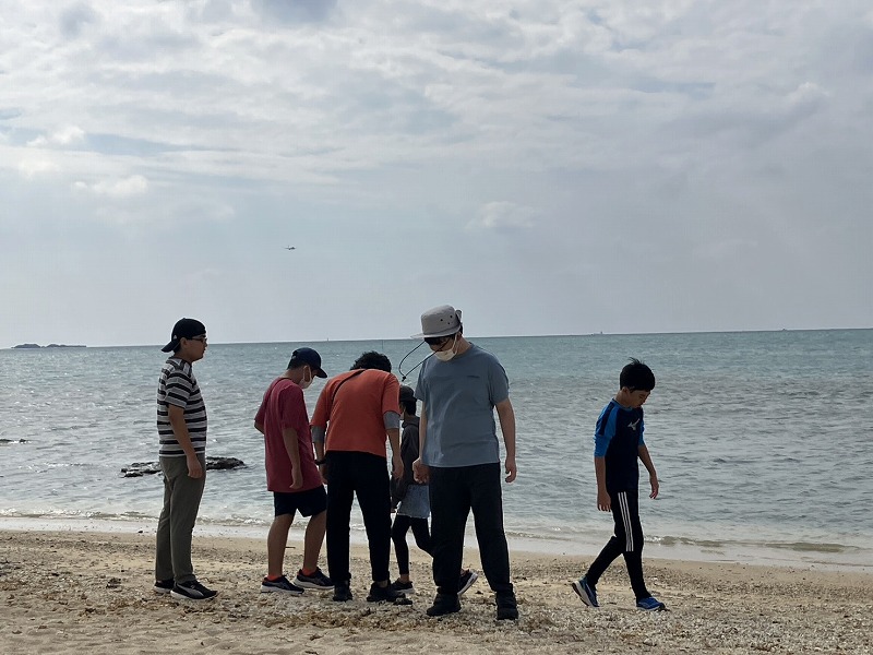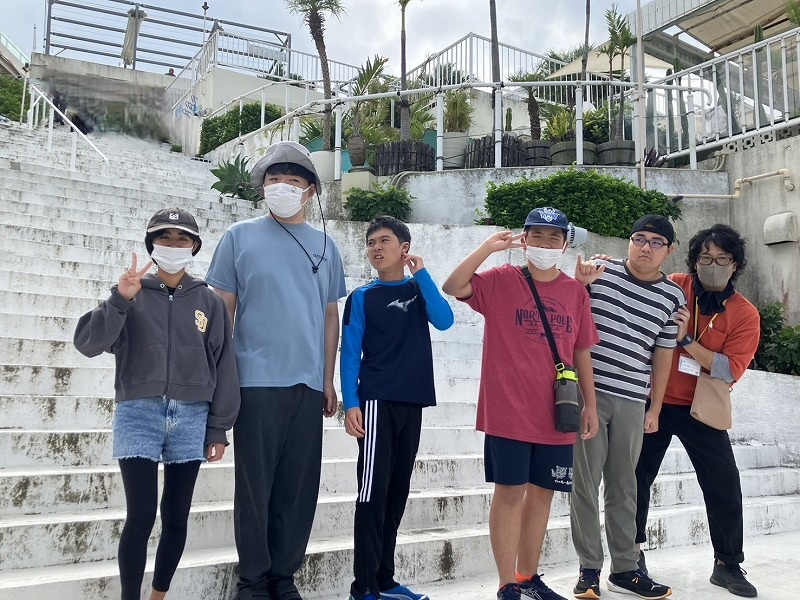 地域散策では瀬長島へドライブに行きました。くもり空で風が強かったですが、晴れ間もあり過ごしやすい天候でした。海岸沿いを散歩したり、商業エリアを歩いたりして楽しみました。