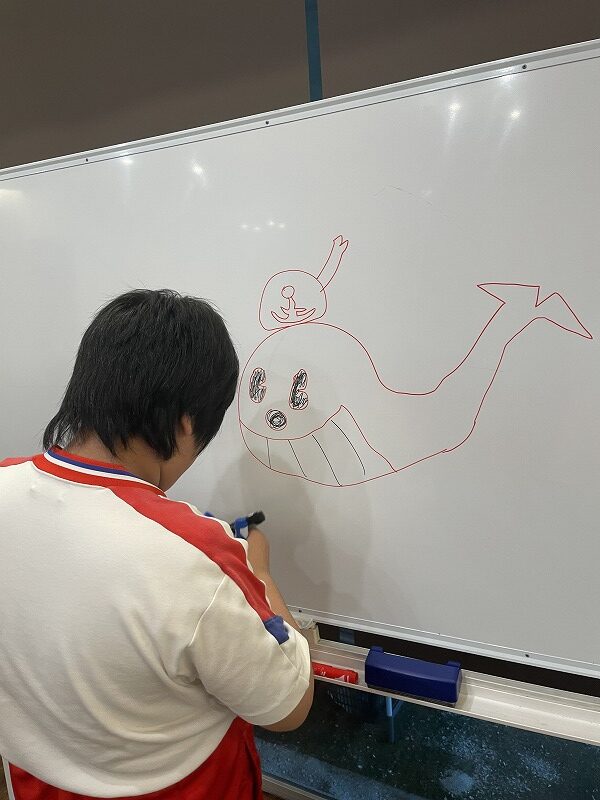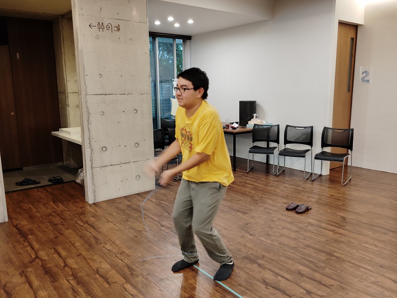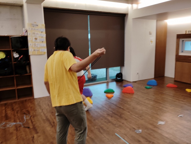 「サンフラワーゲーム」とココイロでは名付けたゲームで、体も動かしながらヒントを頼りに隠されたカードを頭を使って探します。なかなかみつからない時には職員からヒントを貰いながらカードを探してました。