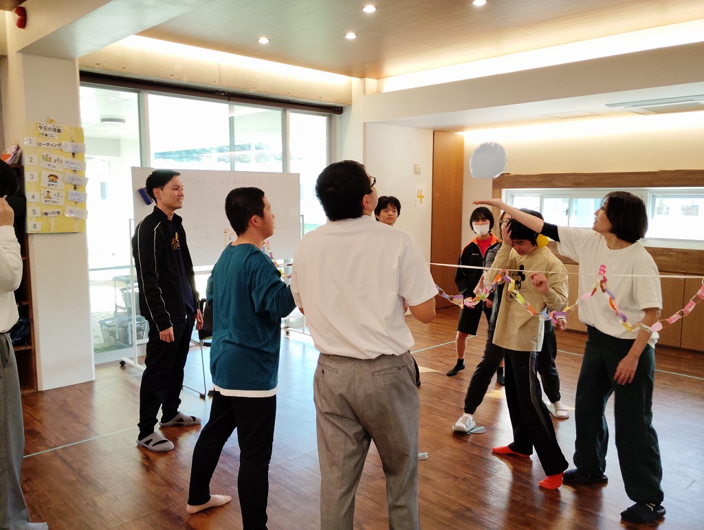 1月13日のココイロでは室内レクとしてミニバレーを行いました。