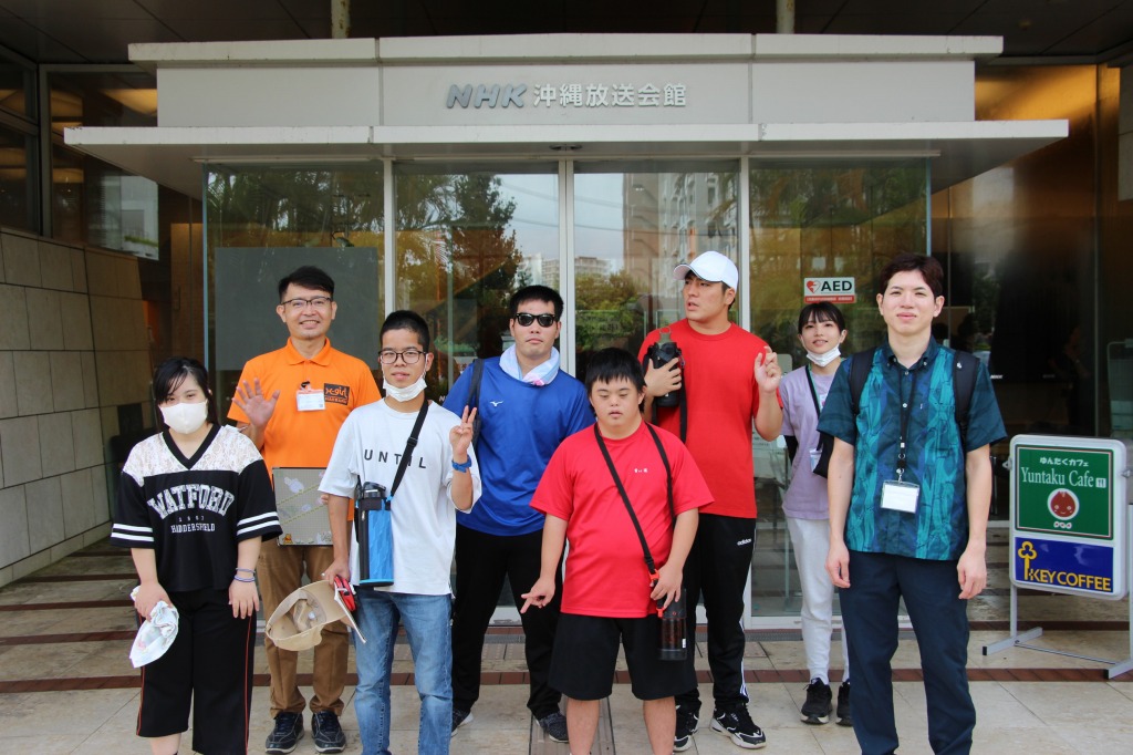 7月28日(月)に移行訓練の社会見学として、新都心にある「NHK沖縄放送局」へ見学に行きました。今回はじぶんみらいココイロの児童も合同で参加をしました。公共施設での注意点やルールも事前に確認して、それぞれ車両に乗り込み出発!今回は放送局内1階のフロアのみの見学でしたが、フロア内にはNHKキャラクターのVRゲームや、ニュース・お天気キャスター体験ブースなどがあり、ニュースがどのようにできているか、どのように映像が作られているか、どのようにお仕事をしているのかなどを体感しながら学ぶことが出来ました。参加されたメンバーはとても興味津々で、それぞれルールもしっかり守り良い経験となりました。