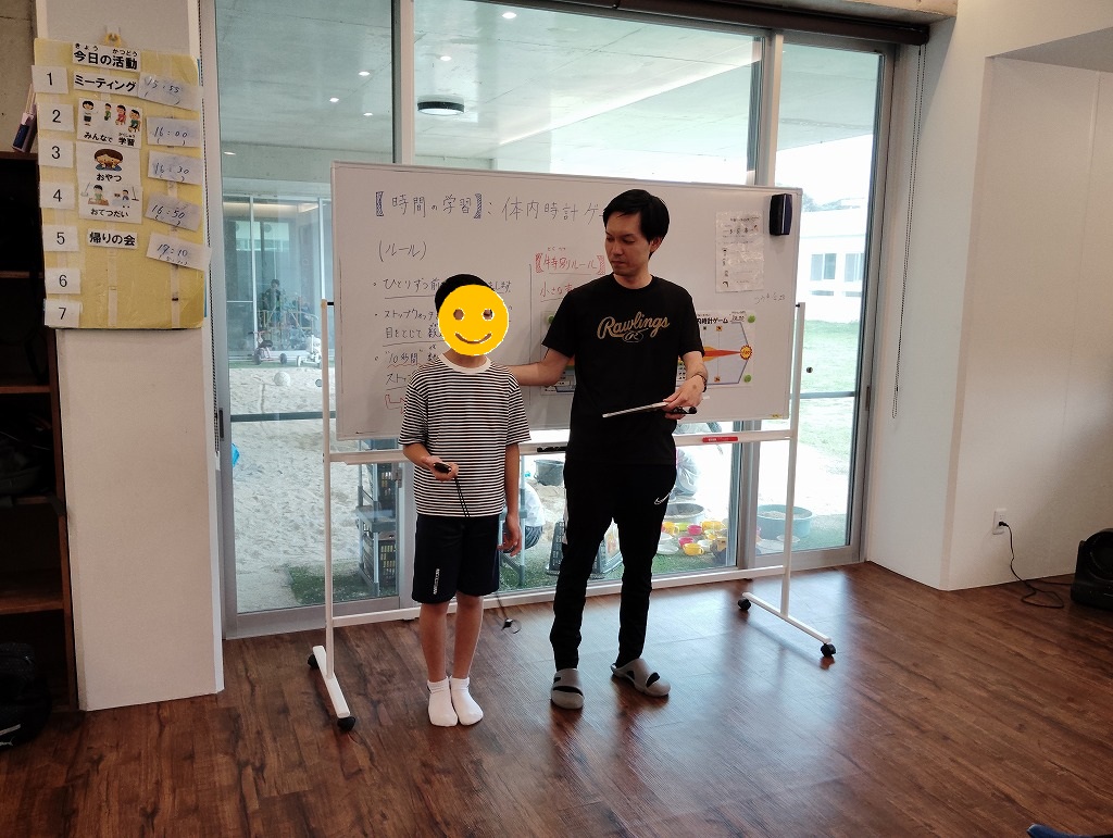 活動の内容としては、学習と言うよりはゲーム性の高いものとなりますが、まずは楽しみながら時間感覚を覚えるところがこのゲームの趣旨となります。今回はみんな自分なりに活動に参加することができており、今後も楽しみながら学習できる機会を作っていけたらと思います。
