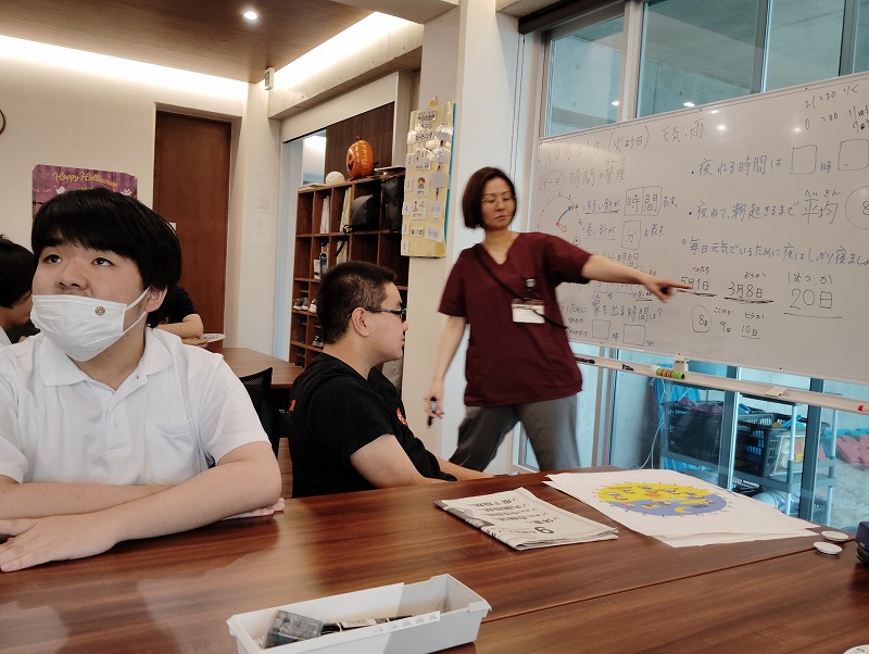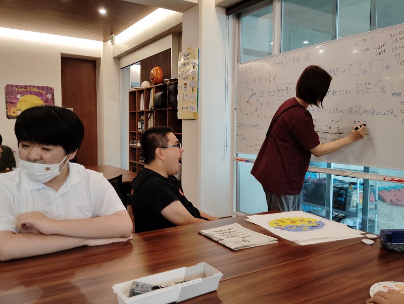 この日の学習では朝起きる時間や寝る時間を質問して睡眠時間を確認してカラダを休める大切さを伝えたのと、日付の読み方(2日は「ふつか」など)や過去や未来についても学習しました。時間の管理はこの先必要になる力だと思いますのでこれからも続けていきたいと思います。