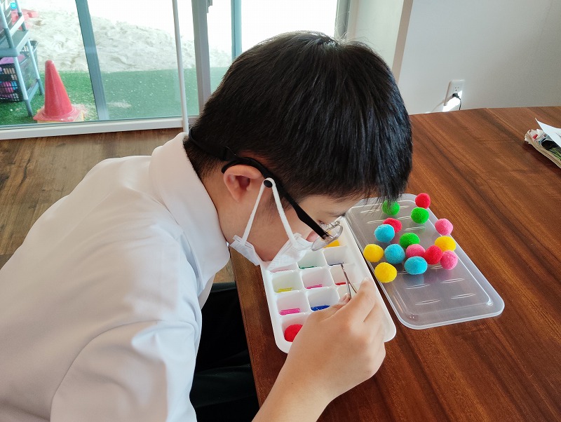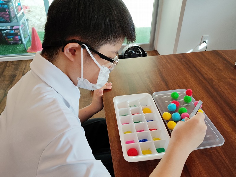色の識別練習や手先の訓練を行っています。