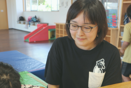 糸満市内や豊見城市の保育園で保育士としで携わってしました。私の長男が通っている園から気になる子で、話があり「発達障害ではないですか?」ということから一人悩んでいた所、色々調べていました。沖縄で初の発達支援センターが出来るという事でまさしく「運命の出会い」「ビビビッ」と感じ、ここしかない。又、心理士や言語聴覚士、作業療法士と共に働くことが出来る。そんないい環境の中で仕事が出来ると思うと新たなチャレンジしたいと思い、入職させていただきました。とても楽しく子供たちと関わりながら活動しています。